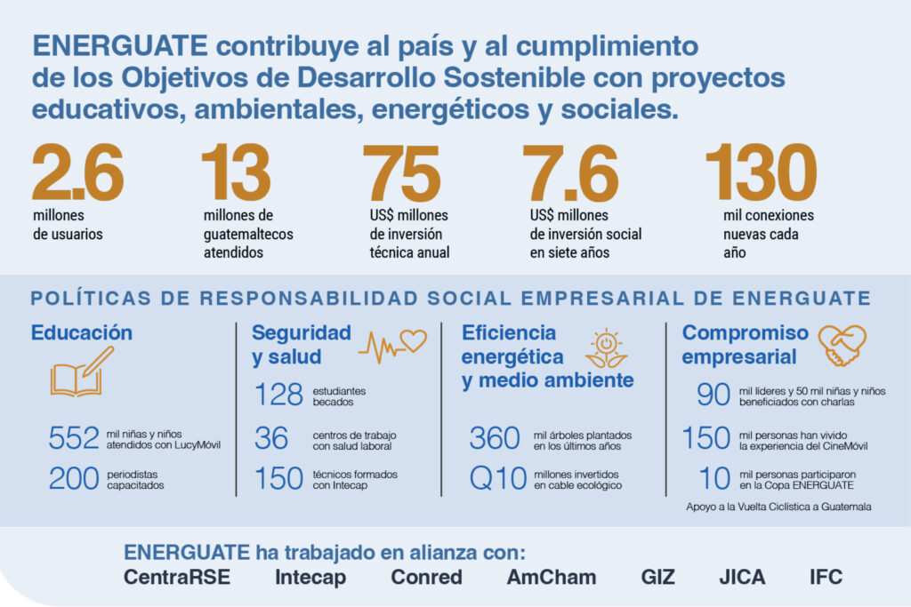 Con una cobertura que acompaña diariamente a más de 13 millones de guatemaltecos, la distribuidora de electricidad más grande de Guatemala no se limita a entregar energía. Su labor se extiende hacia un impacto social que mejora la educación, fortalece la economía local y abre puertas a servicios básicos para la vida de miles de familias, una contribución al cumplimiento del país de los Objetivos de Desarrollo Sostenible de las Naciones Unidas. Por ello, la sostenibilidad es una práctica real en la empresa, y se refleja en los US$7.6 millones invertidos en el último septenio para promover ese desarrollo.
