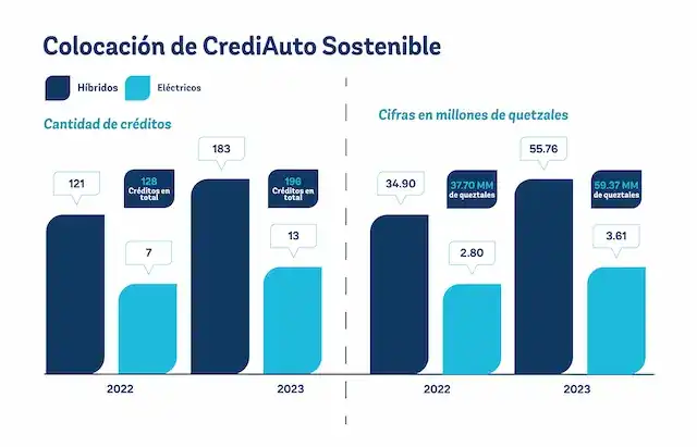 Ejemplo de ello es la línea de “Créditos Sostenibles” de Banco Industrial (Bi), que en 2023 permitió colocar Q59.3 millones para el financiamiento de vehículos híbridos y eléctricos. Esta cifra representa un crecimiento del 57% en comparación con el año 2022.